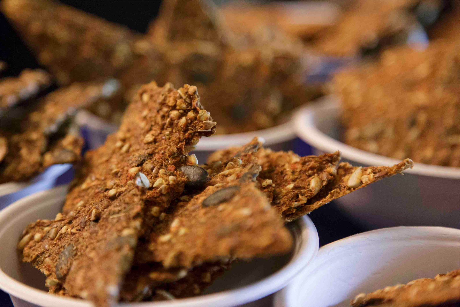 À côté de cela, Benjamin prépare à l’avance du “fromage végétal”, des amandes marinées, des crackers, des idées pour grignotages salés, des dégustations, et puis il y a toute la partie des gourmandises sucrées. En fin de repas, nous voyagerons dans l’univers du cacao. Puis nous créons nos propres gâteaux, comme des truffes, des boules d’énergie ou des barres d’endurance.